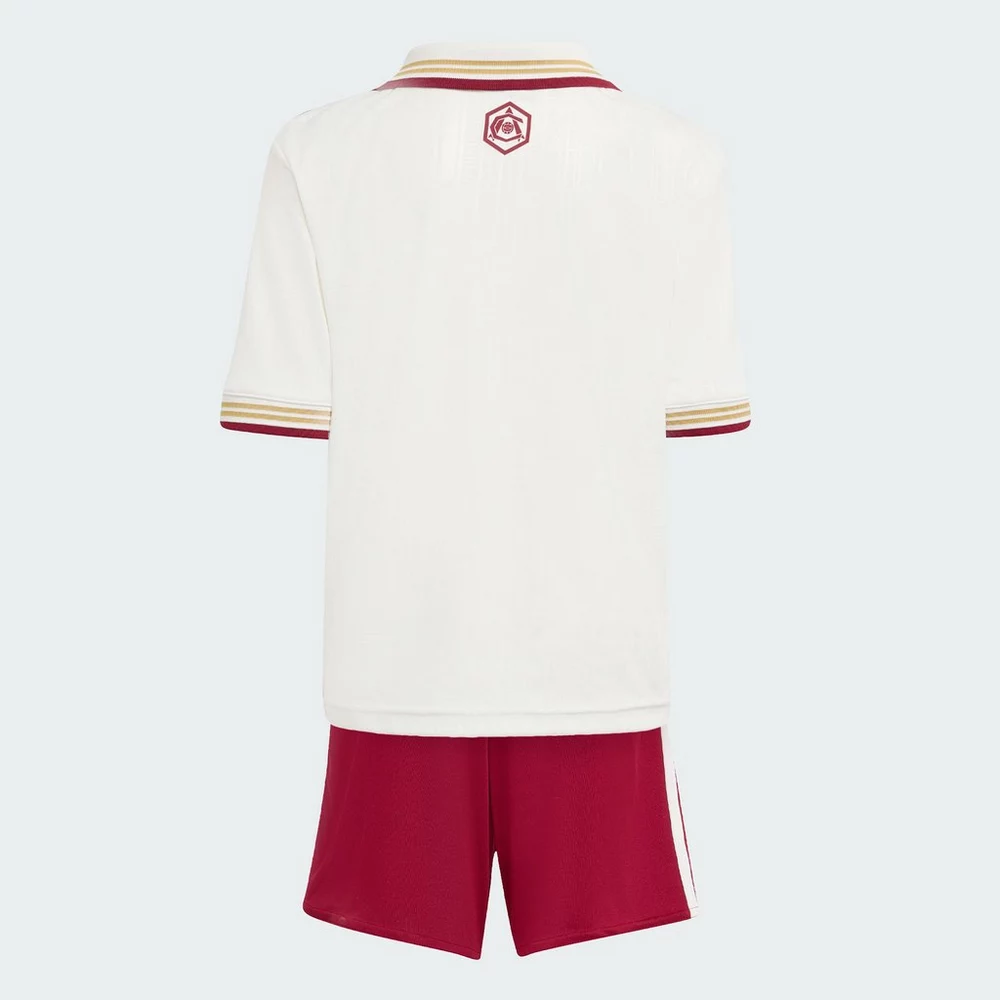 Das süße Arsenal adidas 25/26 Auswärts-Mini-Kit ist die perfekte Ergänzung für jede kleine Garderobe. Es besteht aus einem atmungsaktiven Trikot, elastischen Shorts und passenden Stutzen. Als Hommage an das legendäre Highbury-Stadion bietet es ein weiches Material aus recyceltem Polyester und die feuchtigkeitsabsorbierende AEROREADY-Technologie von adidas, damit sich Ihr kleiner Gunner den ganzen Tag über trocken und wohl fühlt. Aufgedrucktes Kanonen-Logo. Feuchtigkeitsabsorbierende AEROREADY-Technologie. Normale Passform. Tonale Highbury-Grafiken. Elastischer Bund. Inklusive einem Paar Stutzen (Crew-Länge). Bei bedruckten Teilen 24 Stunden nicht waschen. Bei 30 °C auf links waschen. Von links bügeln. Nicht im Wäschetrockner trocknen.