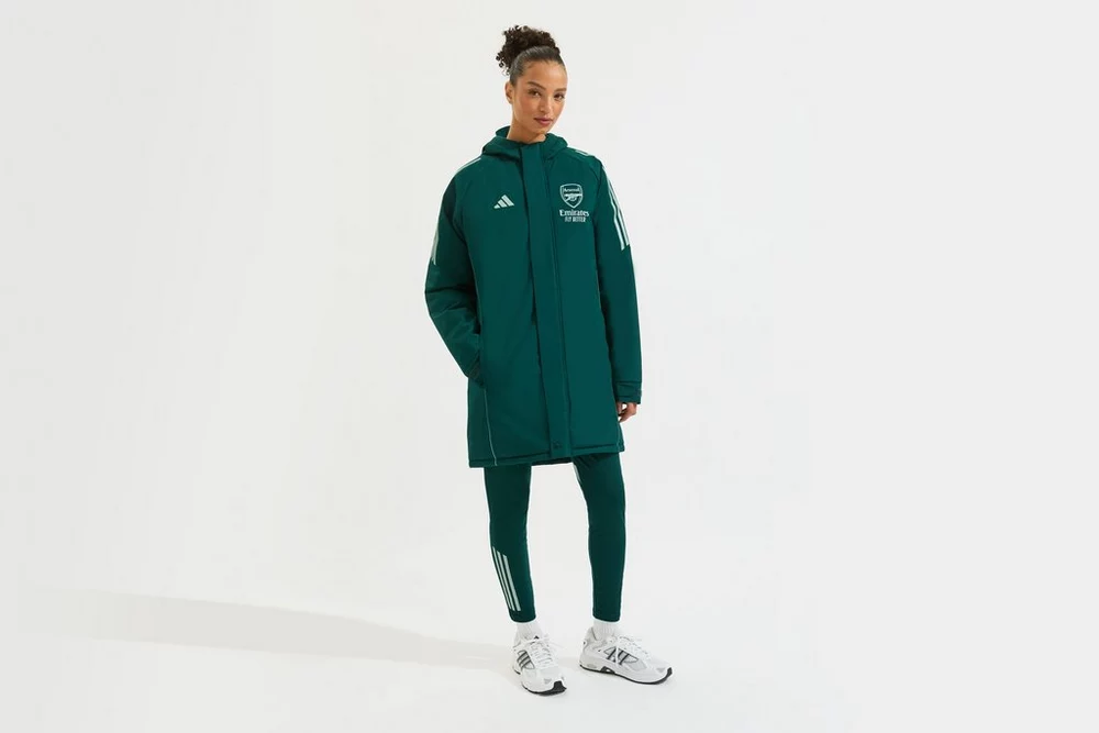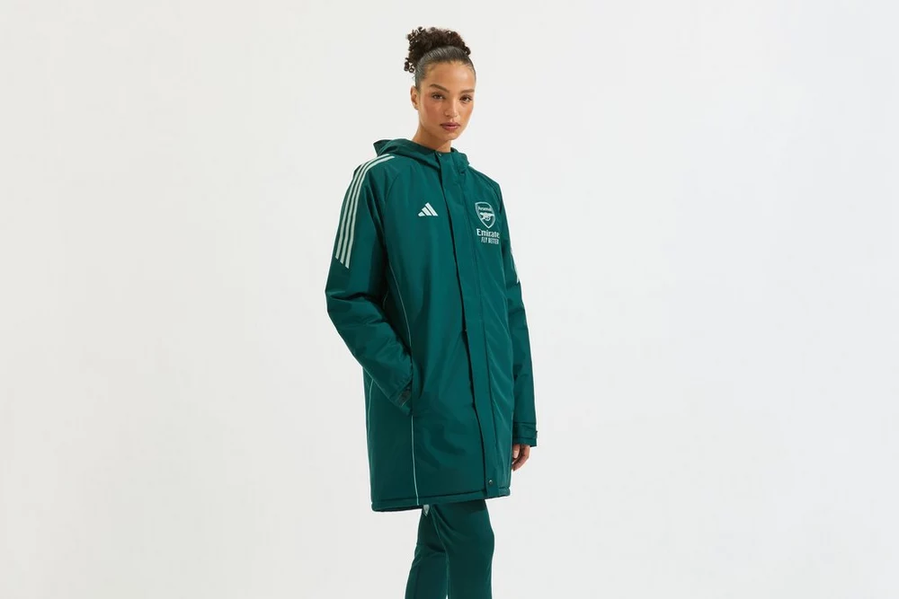 Mit dem Arsenal adidas Stadionparka 25/26 bleibst du die ganze Saison über warm und zeigst deinen Stolz. Er verfügt über eine leichte Isolierschicht, die die Wärme speichert, und ein glattes Außenmaterial, das Regen abhält. Die Fronttaschen mit Reißverschluss bieten zusätzliche Vielseitigkeit, und das aufgedruckte Vereinswappen auf der Brust sorgt für den perfekten Arsenal-Touch.