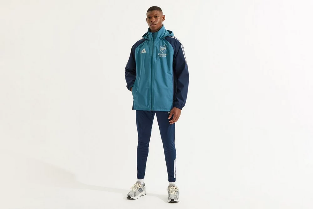 Lass dich vom Regen nicht beim Training ausbremsen. Die Arsenal adidas Regenjacke 25/26 sorgt dafür, dass du bei jedem Wetter fit bleibst. Sie hat ein aufgedrucktes Vereinswappen auf der Brust, eine per Kordelzug verstellbare Kapuze, die bei Nichtgebrauch verstaut werden kann, und ein atmungsaktives Mesh-Futter. Dank der adidas RAIN.RDY-Technologie und der wasserabweisenden Ausrüstung wird sie schnell zu deiner Lieblingsjacke für jedes Training, egal ob Regen oder Sonnenschein.