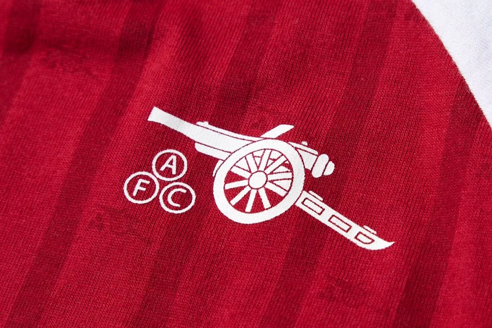 Nie war Fußballstolz im Vintage-Stil so süß! Inspiriert vom Trikot der Gunners aus den späten 80er-Jahren, kommt das Arsenal Baby Retro 88-89 Heimtrikot mit einem aufgedruckten Retro-Kanonen- und AFC-Slogan, kontrastweißen Ärmeln und einem charakteristischen gerippten V-Ausschnitt. Mit seinem klassischen roten Korpus, den Ton-in-Ton-Streifen und der superweichen Baumwolloberfläche hält es kleine Gunners den ganzen Tag warm und stolz.
