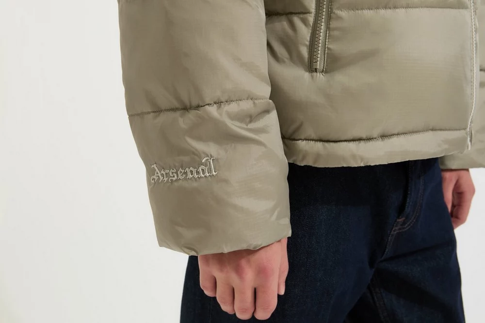 - Gestickter Arsenal-Slogan im Gothic-Stil am Ärmelbündchen