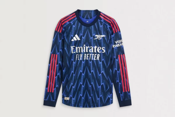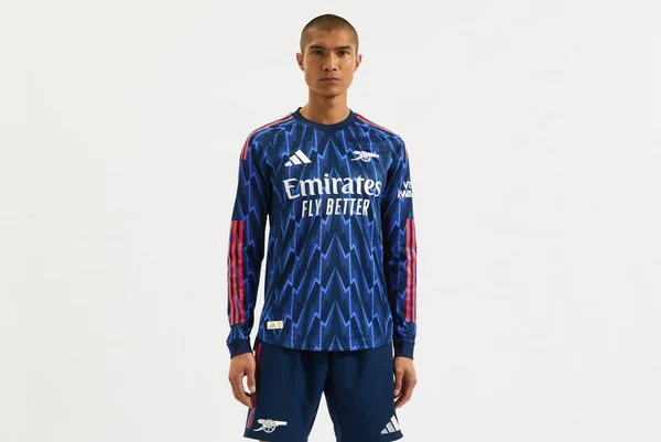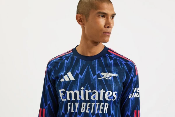 Erlebe Höchstleistungen auf dem Platz mit dem authentischen Arsenal adidas Auswärtstrikot 25/26 mit langen Ärmeln. Es wird von den Spielern auf dem Auswärtsplatz getragen und besticht durch die ikonische Blitzgrafik für einen nostalgischen Look, eine aufgedruckte Kanone auf der Brust und die atmungsaktive adidas HEAT.RDY-Technologie für optimalen Tragekomfort.
