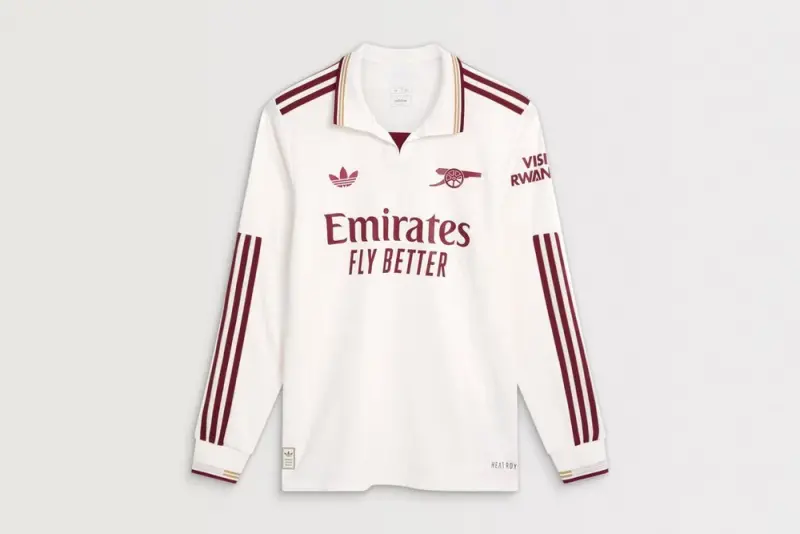 Erlebe Top-Performance auf dem Platz mit dem authentischen Arsenal adidas Auswärtstrikot 25/26 mit langen Ärmeln. Es wird von den Spielern auf dem Auswärtsplatz getragen und besticht durch die ikonische Blitzgrafik für einen nostalgischen Look, eine aufgedruckte Kanone auf der Brust und die atmungsaktive adidas HEAT.RDY-Technologie für optimalen Tragekomfort.