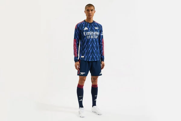 Erlebe Höchstleistungen auf dem Platz mit dem authentischen Arsenal adidas Auswärtstrikot 25/26 mit langen Ärmeln. Es wird von den Spielern auf dem Auswärtsplatz getragen und besticht durch die ikonische Blitzgrafik für einen nostalgischen Look, eine aufgedruckte Kanone auf der Brust und die atmungsaktive adidas HEAT.RDY-Technologie für optimalen Tragekomfort.