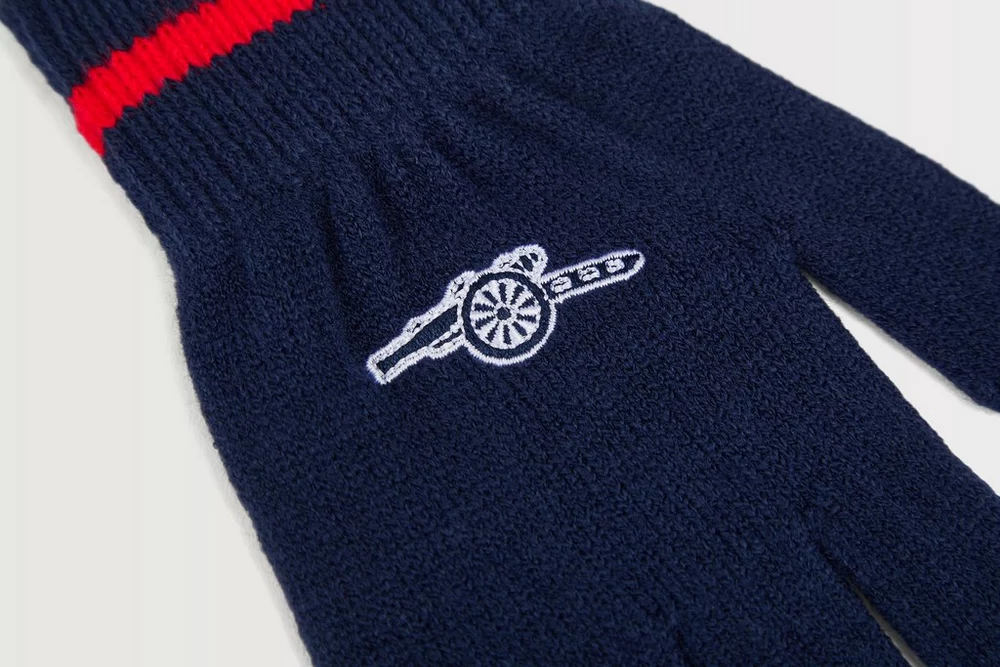 Mit den Arsenal Kids Cannon Handschuhen bleibt Ihr kleiner Gunner die ganze Saison über warm und kuschelig. Die Handschuhe sind aus weichem Strick gefertigt und bieten so höchsten Tragekomfort im Alltag. Sie verfügen über eine gestickte Kanone auf dem Handrücken und gerippte Bündchen für eine bequeme Passform – ganz im Arsenal-Stil.