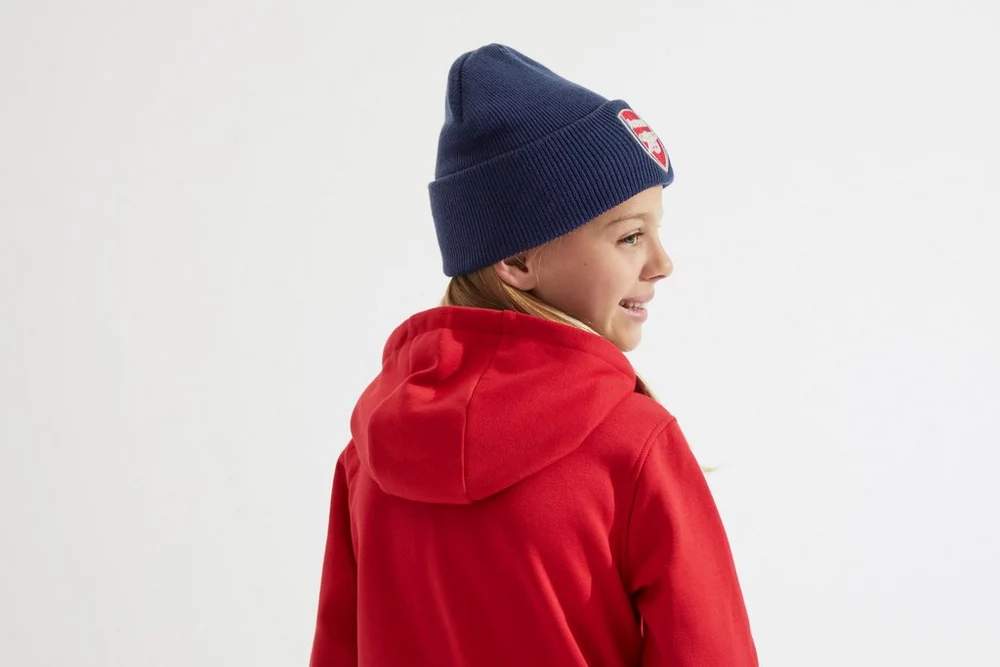 Mit der Arsenal Kleinkind-Mütze mit dem Vereinswappen Nr. 47 bleibt Ihr Kind warm und stolz. Die weiche und dehnbare Mütze hat ein gesticktes Vereinswappen auf der Vorderseite und einen klassischen umgeschlagenen Rand, damit Ihr kleiner Gunner die ganze Saison über warm und bequem sitzt.