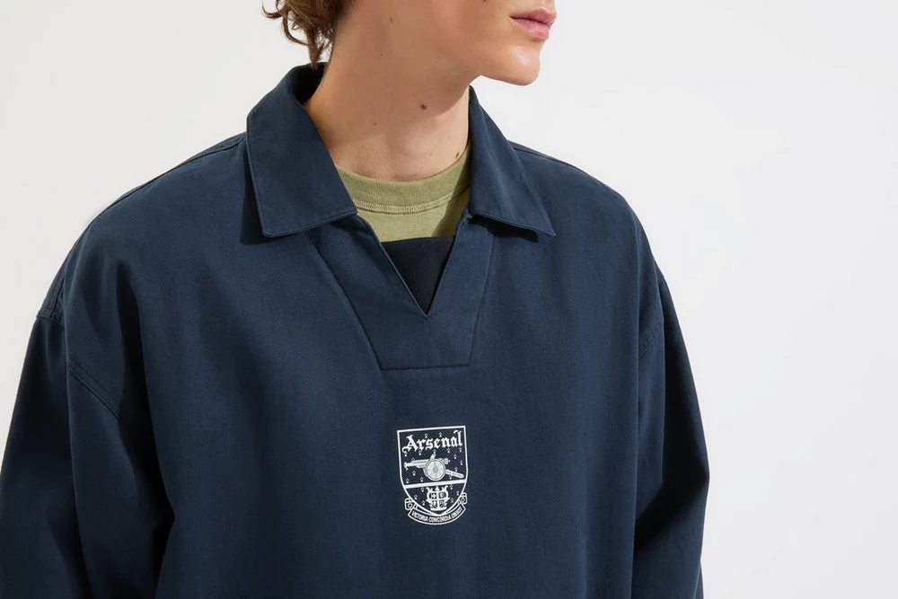 Mit dem Arsenal Concordia Drill Top bist du bestens gerüstet für lässigen Fußball-Look – jeden Tag. Die entspannte Silhouette im Vintage-Stil, das aufgedruckte Retro-Vereinswappen auf der Brust und die elastischen Bündchen an Ärmeln und Saum sorgen dafür, dass du in jeder Menge mit lässigem Arsenal-Charme auffällst.