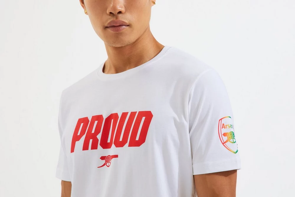 Zeig deinen Stolz wie nie zuvor mit dem Arsenal Proud T-Shirt. Es versprüht Arsenal-Charme und kommt mit einem aufgedruckten Kanonen- und Proud-Slogan auf der Vorderseite, einem klassischen gerippten Rundhalsausschnitt und einem aufgedruckten Vereinswappen in den Farben der LGBTQ+ Progress Pride Flagge auf dem Ärmel – damit du in jeder Menge auffällst.