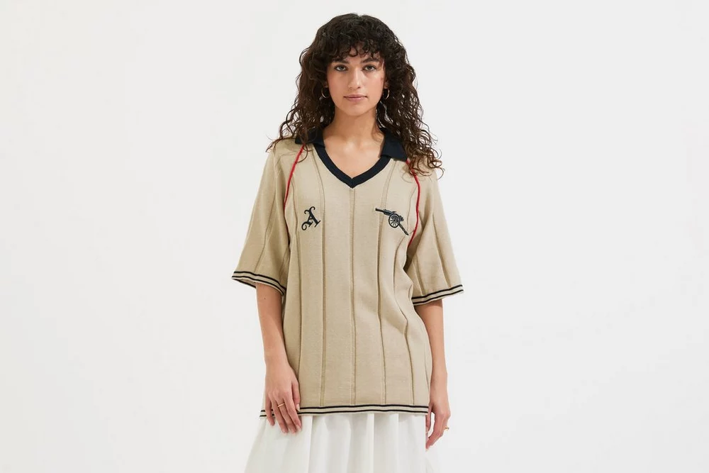 Das eleganteste Poloshirt, das Ihre Garderobe bereichern wird: Das Arsenal Unisex Gold Strickpoloshirt ist das perfekte, gehobene Basic für jeden Tag. Mit seinem weichen, gerippten Strickfinish, einer gestickten Retro-Kanone und einem gotischen A auf der Brust sowie einem kontrastierenden Polokragen sorgt dieses Shirt für nostalgischen Arsenal-Charme und lässt Sie in jeder Situation auffallen – egal, was Sie tragen.