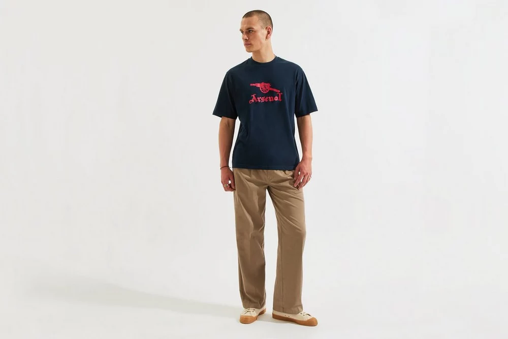 Das coolste T-Shirt für jeden Tag: Das Arsenal Unisex Stamp Print T-Shirt verleiht jedem Outfit mühelos Arsenal-Stolz. Mit einem aufgedruckten, gotischen Arsenal-Slogan und einer Retro-Kanone auf der Vorderseite bietet es eine lässige Passform mit überschnittenen Schultern und weichem Baumwollmaterial für optimalen Tragekomfort den ganzen Tag über – und das mit einem Hauch Nostalgie.